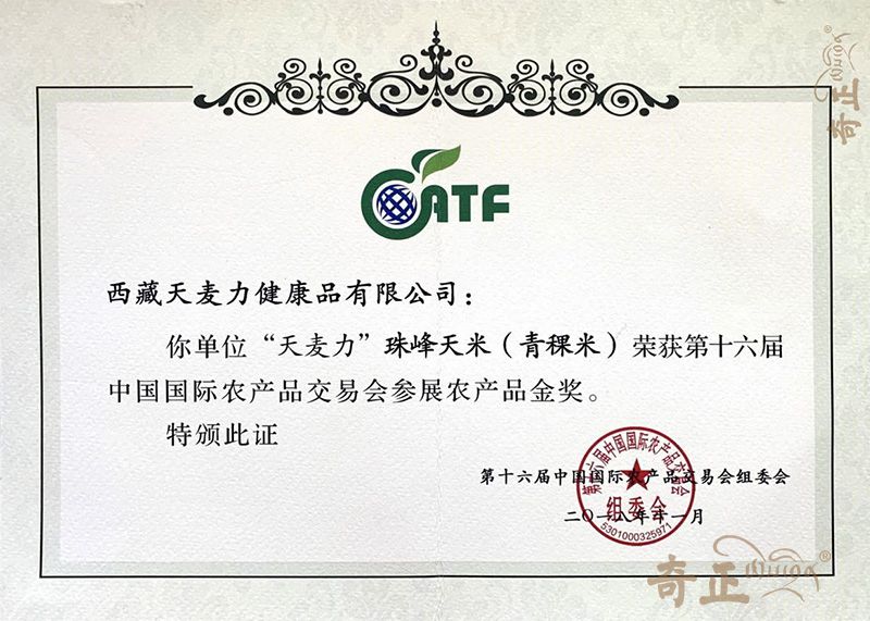 珠峰天米(青稞米)金獎(jiǎng)