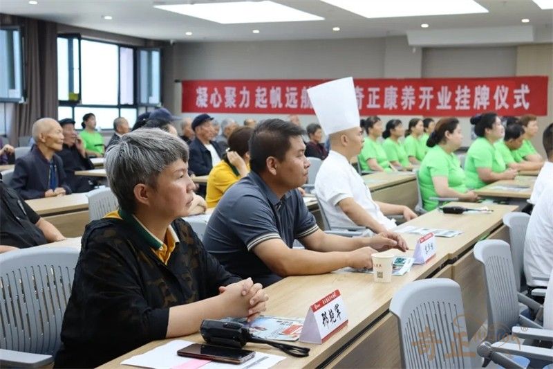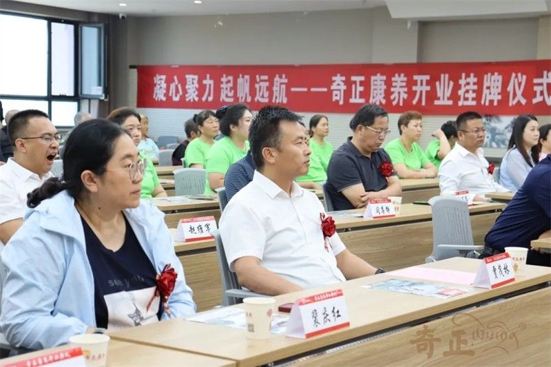 在現(xiàn)場熱烈的掌聲中,領(lǐng)導嘉賓共同為奇正康養(yǎng)揭牌。紅布緩緩揭開,牌匾熠熠生輝,象征著奇正康養(yǎng)正式揚帆起航。